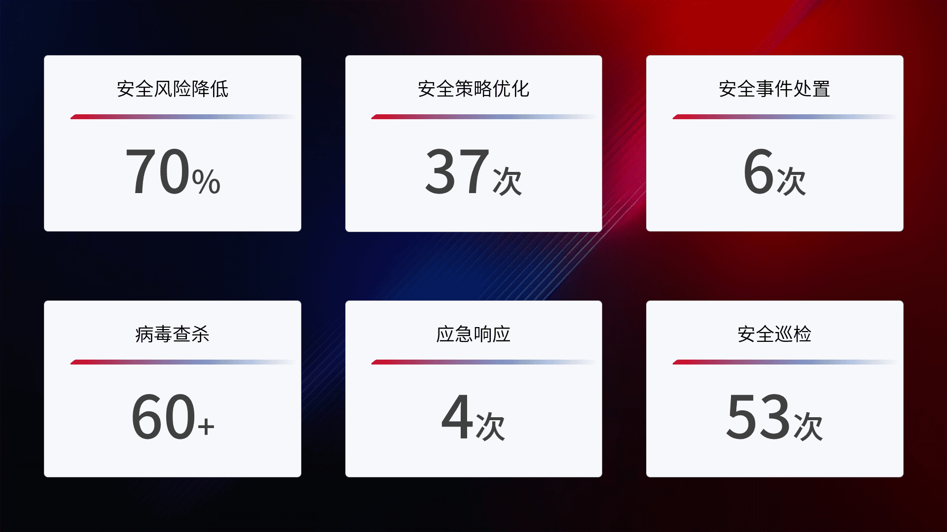 综合报告与文档服务: 定期提供安全事件处置报告、、、周/季度总结报告和年度总结报告;详尽的文档服务可帮助客户了解网络安全状况,,支持决策制定和流程优化。。